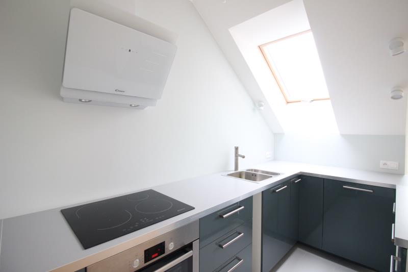 W kuchni meble i sprzęty, w tym zmywarka. Z pokoju dziennego wyjście na niewielki balkon.